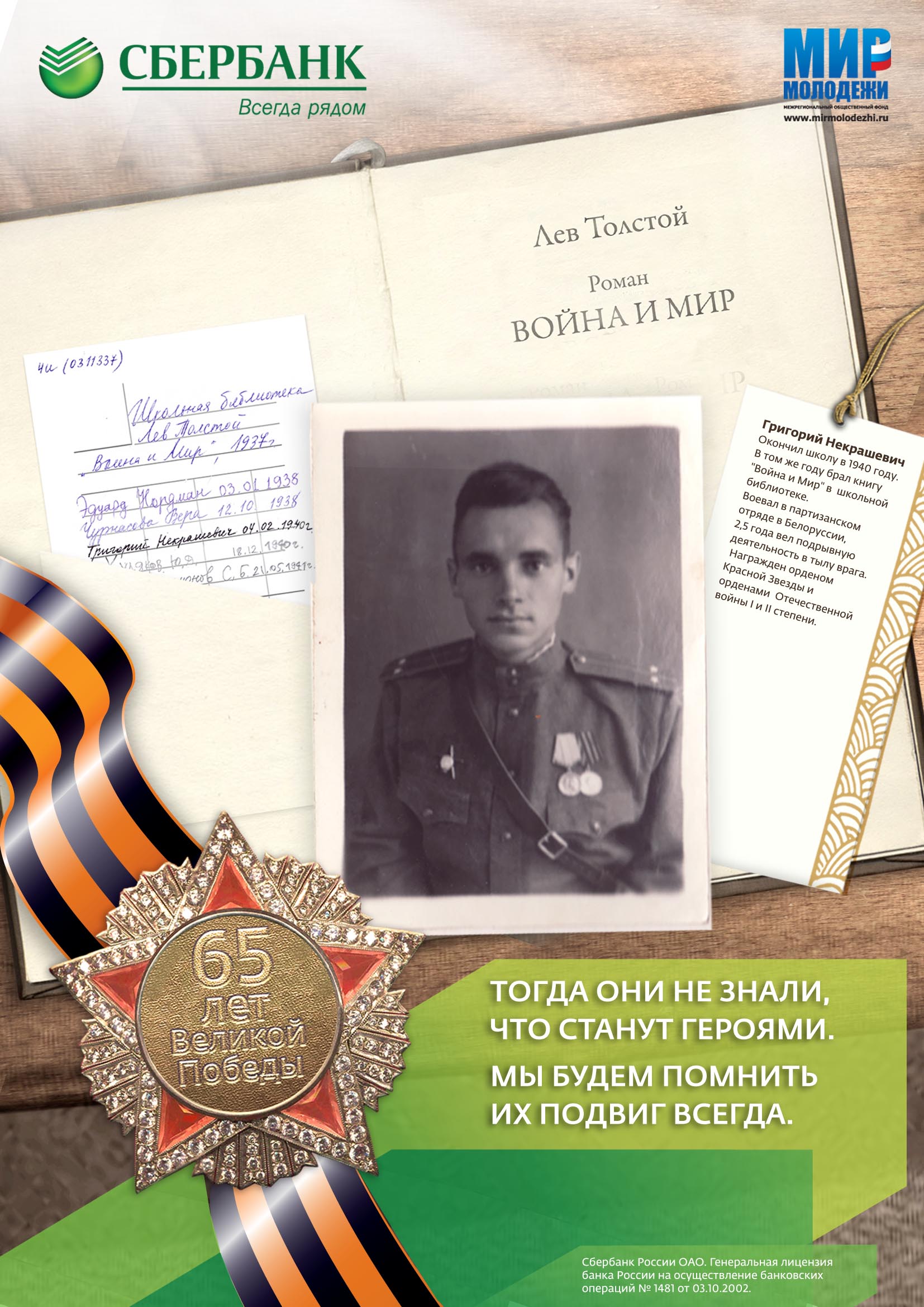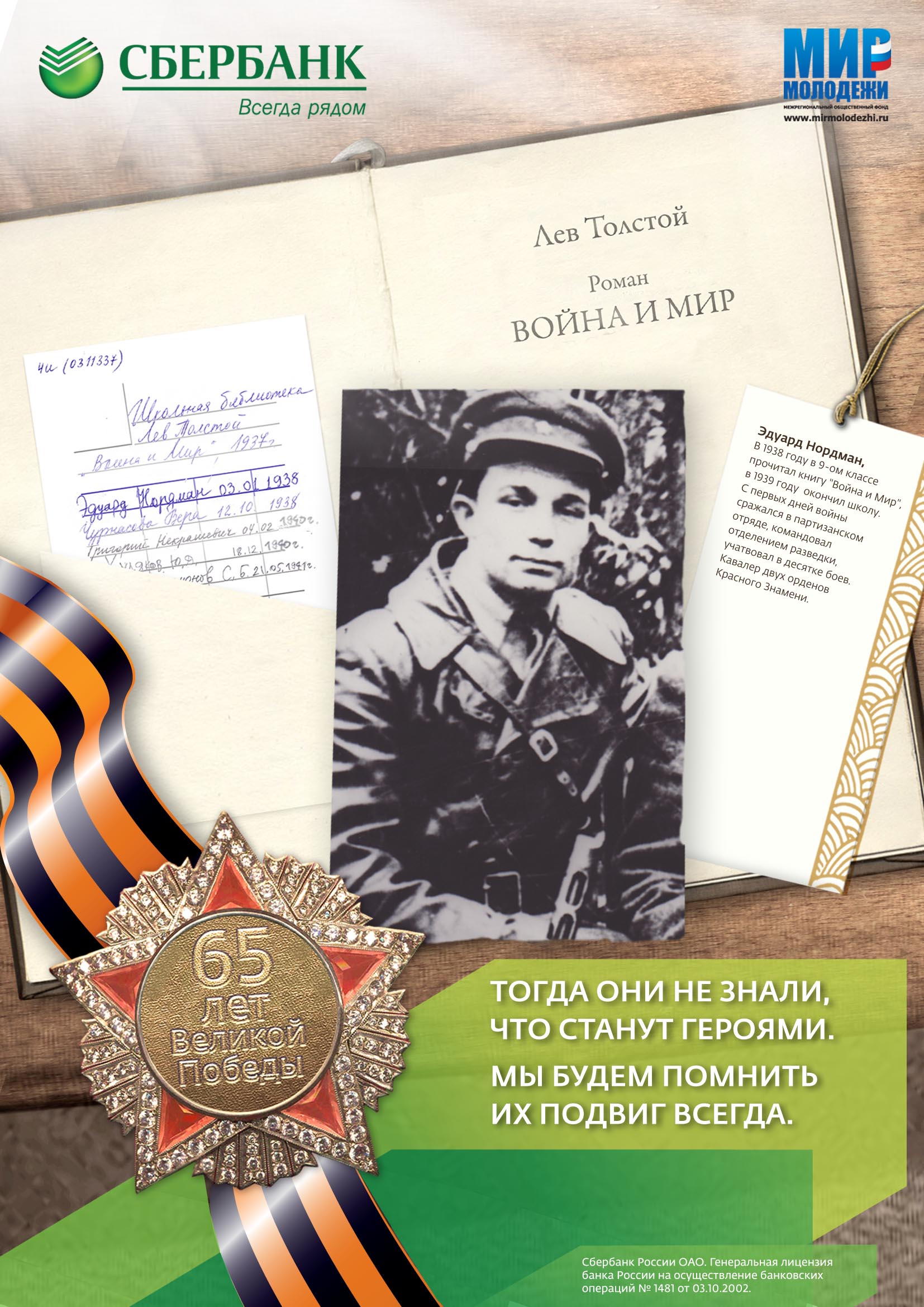 Федеральная информационная кампания, посвященная празднованию 65-ой годовщины Победы в Великой Отечественной Войне. Акция прошла в мае 2010 года при поддержке ОАО «Сбербанк России».